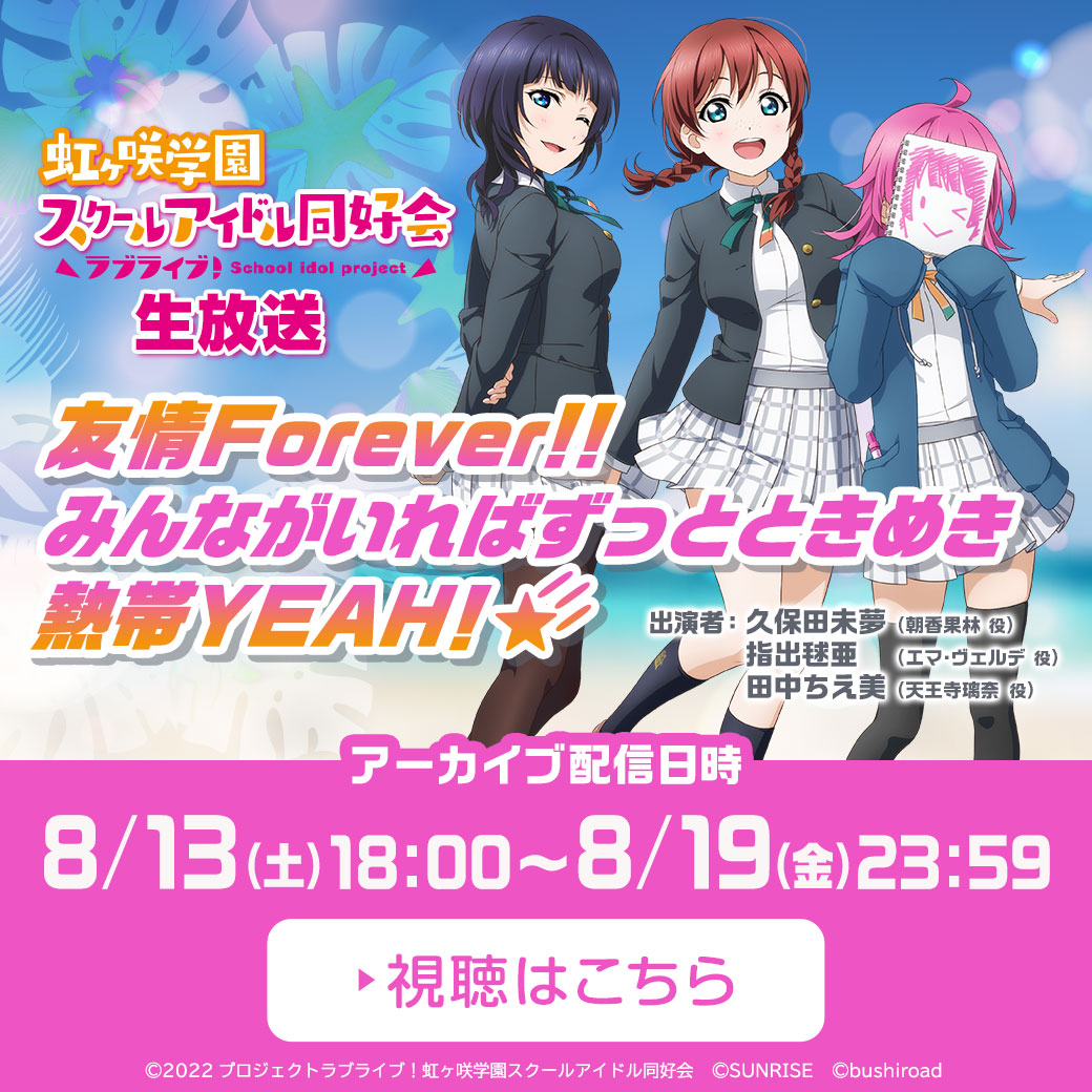 「ラブライブ!虹ヶ咲学園スクールアイドル同好会生放送 with You!! 5th Live! 虹が咲く場所後夜祭♪次の未来へTOKIMEKI Parade☆」のお知らせ