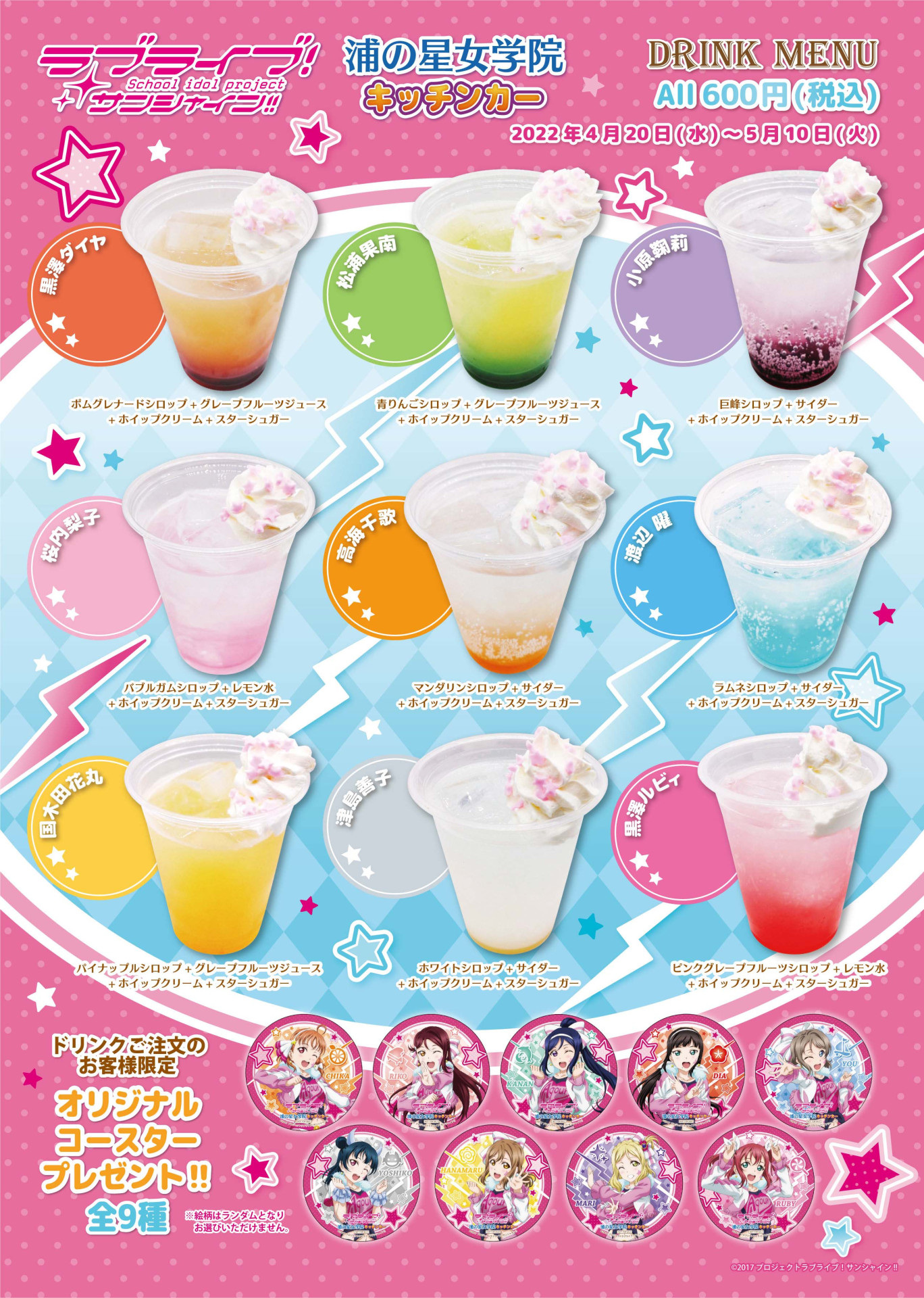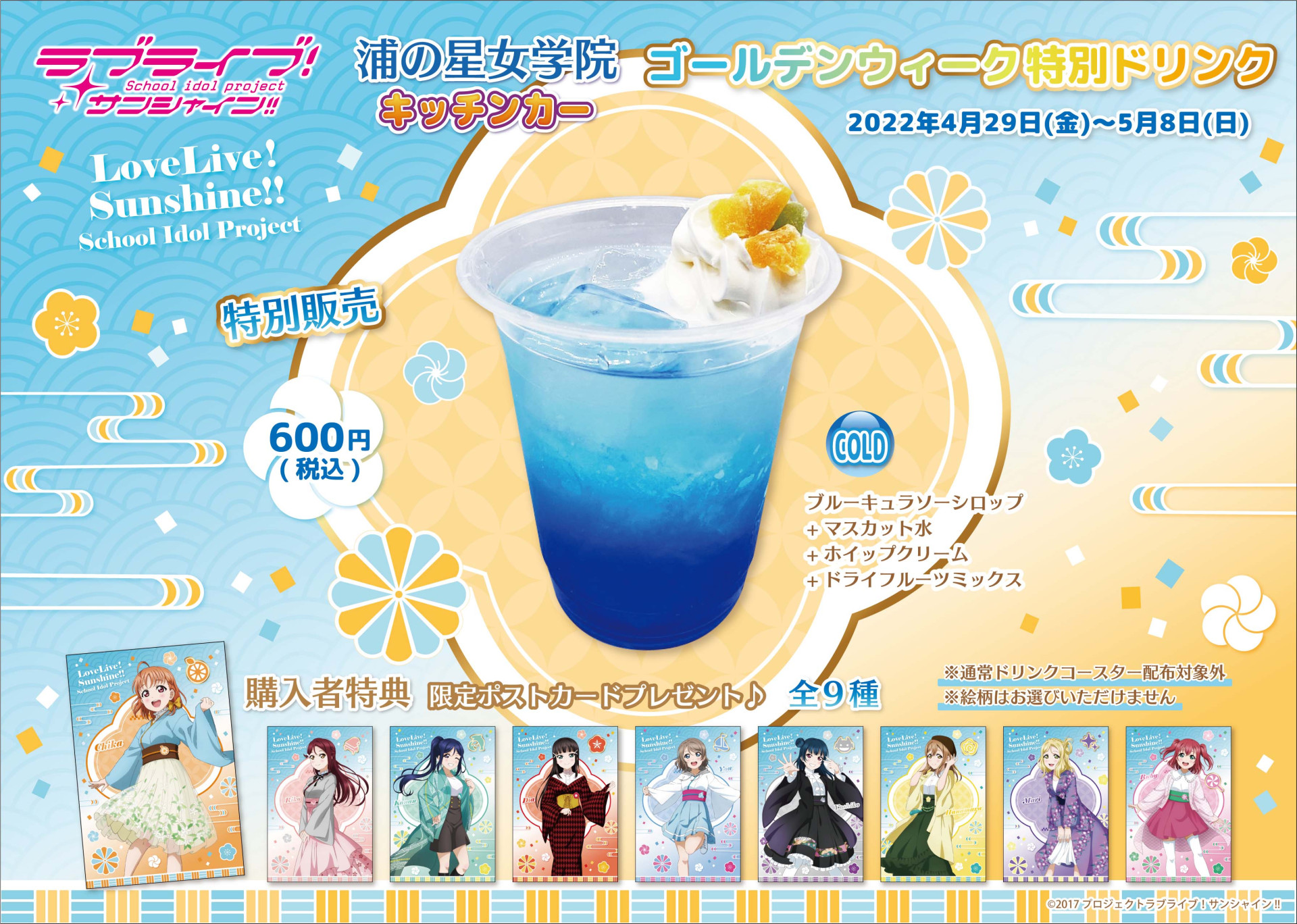 浦の星女学院キッチンカーよりゴールデンウィーク特別ドリンクのお知らせ