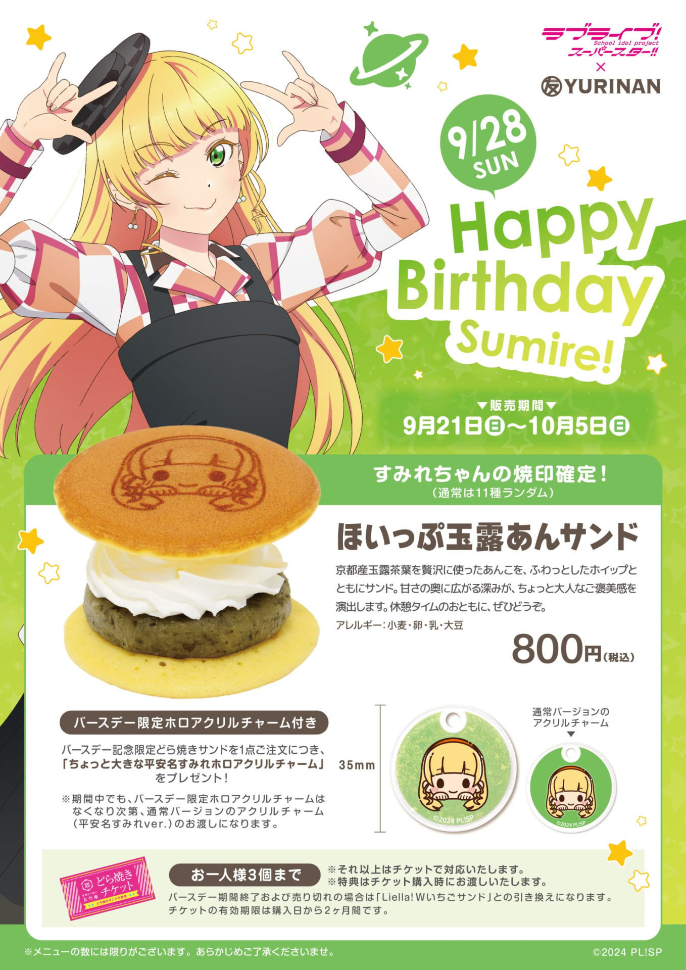 YURINAN -ゆうりんあん- より、ラブライブ!スーパースター!! 平安名すみれ バースデー記念メニュー販売のお知らせ!